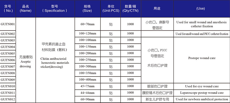 无菌敷贴-甲壳素抗菌止血材料贴膜(敷料)-PU膜基材-凝胶甲壳素